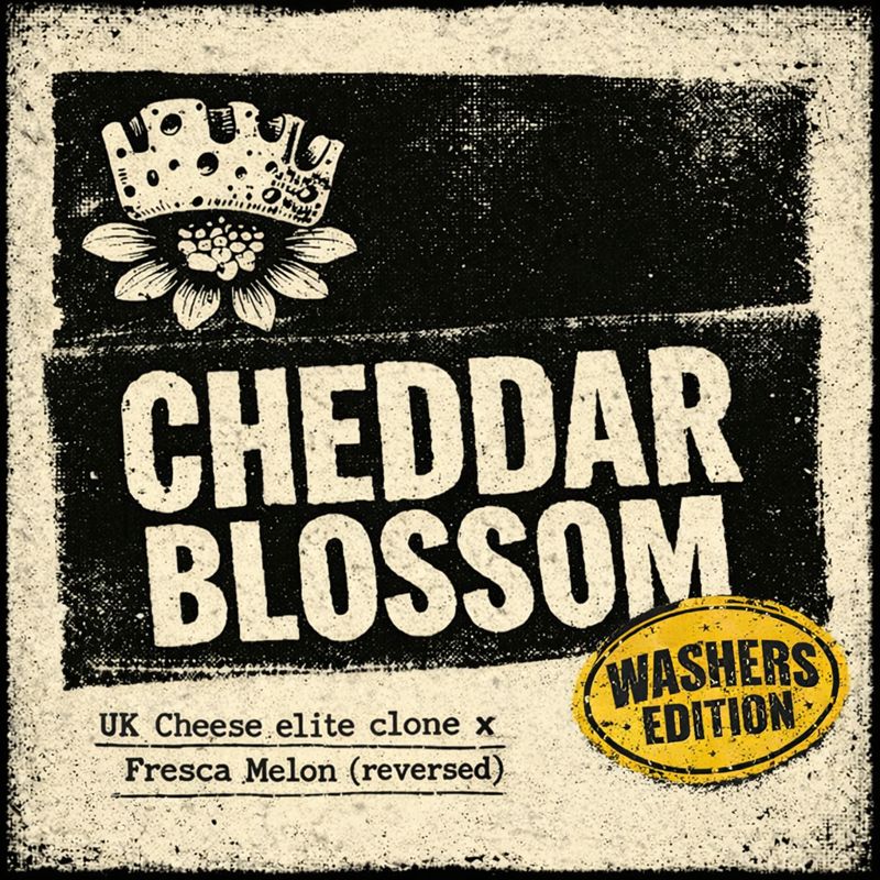 At Old School Genetics we don’t “curate” with marketing language—we select releases that make genetic and practical sense. Cheddar Blossom earns its place because it’s built from clone-proven stock (UK Cheese elite clone as the mother) and paired with a reversal chosen for resin-driven output. It’s a limited feminized pack with a clear purpose: a Cheese backbone lifted into a more tropical register, with washers in mind.