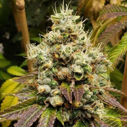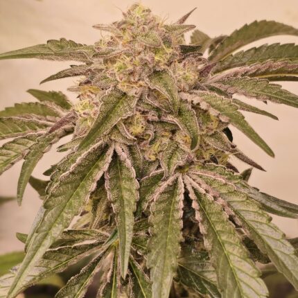 A exclusive low number release giving great plants with wonderfull bag apeal , medium stretch, needing a litle extra veg time. Resulting in great resin coverd tight flowers with a slight purpel colouring and a sweet candy limey doughy type nose, also can make some superb tasty hash.